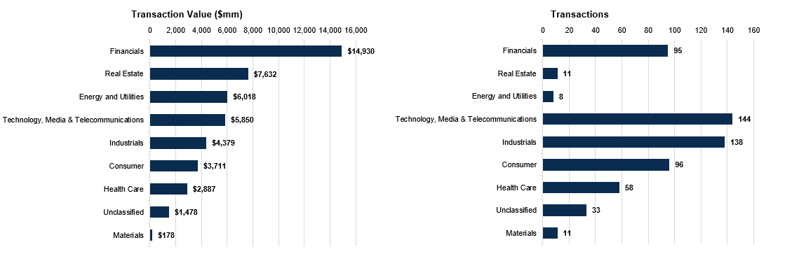 The following transactions represent M&A activity where the target entity is headquartered in described geography, in line with the traditional reporting on target M&A deal volume and metrics captured in the charts and conventional analysis above.